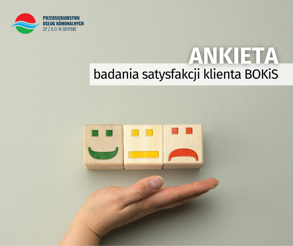 Zwracamy się do Państwa z prośbą o wypełnienie ankiety dotyczącej badania satysfakcji klienta Biura Obsługi Klienta i Sprzedaży Przedsiębiorstwa Usług Komunalnych Sp. z o.o. w Gryfinie. Celem badania jest poznanie Państwa opinii pod kątem spełnienia Państwa oczekiwań. Państwa opinie pozwolą nam udoskonalić pracę BOKiS, a przez to posłużą podniesieniu jakości świadczonych usług. Ankieta jest anonimowa.