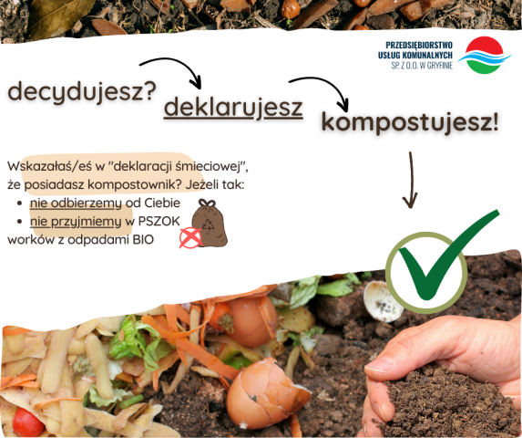 Przedsiębiorstwo Usług Komunalnych Sp. z o.o. w Gryfinie, informuje, że prowadzona będzie weryfikacja sposobu postępowania z frakcją odpadów BIO. Zadeklarowanie posiadania kompostownika umożliwiło mieszkańcom obniżenie stawki opłaty za gospodarowanie odpadami komunalnymi. W takich przypadkach, to na właścicielach nieruchomości spoczywa obowiązek zagospodarowania tego typu odpadów. Oznacza to, że Przedsiębiorstwo nie będzie odbierać z tych nieruchomości worków z odpadami BIO (i/lub przyjmować w Punkcie Selektywnej Zbiórki Odpadów Komunalnych).