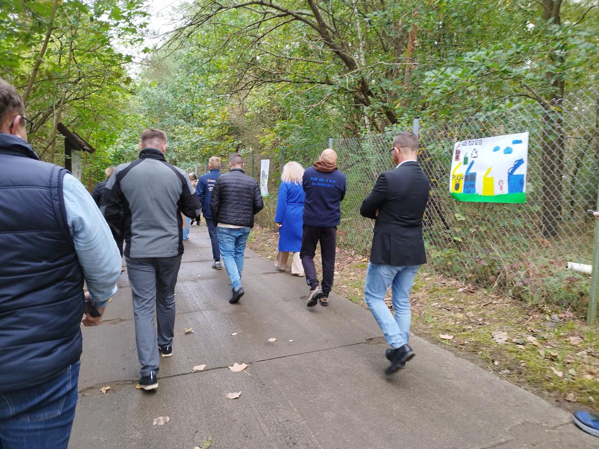 Na uroczystości oficjalnego otwarcia obiektu pojawili się zaproszeni goście, w tym m.in. przedstawiciele władz samorządowych, wykonawcy, partnerzy oraz pracownicy Wydziału Gospodarki Odpadami i Ochrony Środowiska PUK. Przybyłych przywitali Zarząd Spółki – Prezes Marcin Stawicki i Wiceprezes Wojciech Długoborski, którzy jednocześnie podziękowali wszystkim za obecność oraz wkład zarówno w przedsięwzięcie polegające na budowie PSZOK, jak i w organizację wydarzenia. Głos zabrał także Burmistrz Miasta i Gminy Gryfino Mieczysław Sawaryn podkreślając ważność tworzenia tego typu infrastruktury i kierując słowa uznania dla ciężkiej pracy wszystkich zaangażowanych w funkcjonowanie systemu gospodarowania odpadami komunalnymi w Gminie Gryfino. Pani Katarzyna Ulas – Kierownik Wydziału, przeprowadziła uczestników wydarzenia przez kolejne nowopowstałe w ramach inwestycji elementy opowiadając o ich funkcjonalności i miejscu w procesie postępowania z odpadami. Trasa uwzględniała także prezentację taboru samochodowego, o którym opowiedział Mistrz ds. Wywozu Odpadów Rafał Kiełt, a dalej odwiedzenie ścieżki edukacyjnej znajdującej się na terenie Składowiska, gdzie zaprezentowano prace plastyczne uczniów lokalnych szkół wykonane w ramach tegorocznego projektu „EKO Patrol – segreguję i nigdy tego nie pożałuję”. Na końcu ścieżki, czyli na czaszy zrekultywowanej kwatery Składowiska swoje instalacje związane z ochroną środowiska zaprezentowały firmy-partnerzy. Przy okazji, z tego miejsca, jak z punktu widokowego, można było objąć nową infrastrukturę wzrokiem w całej okazałości.