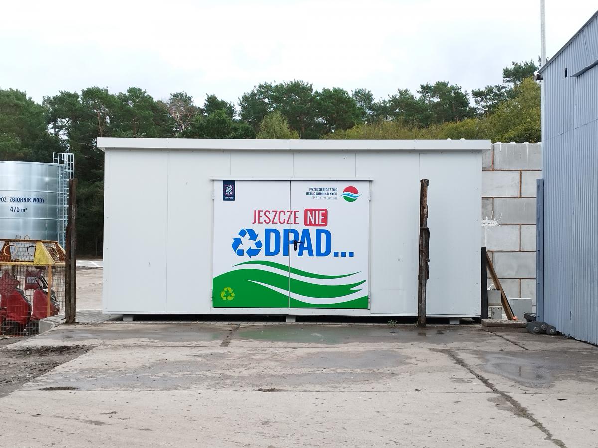 Jednym z nowych elementów jest kontener przeznaczony do zbierania i przekazywania kolejnym użytkownikom rzeczy używanych (magazyn kontenerowy). Punkt „Jeszcze nie odpad”, który pojawił się wraz z realizacją budowy PSZOK-u, wprowadza zupełnie nową funkcję polegającą na ograniczaniu powstawania odpadów w zgodzie z hierarchią postępowania z odpadami. Zamiast do śmietnika, nadające się nadal do użytku przedmioty, mogą trafić właśnie tutaj. Mieszkańcy gminy Gryfino będą mogli pozostawić rzecz „z drugiej ręki” lub taką rzecz zabrać i w dalszym ciągu użytkować. W tym miejscu można dać rzeczom „drugie życie”.