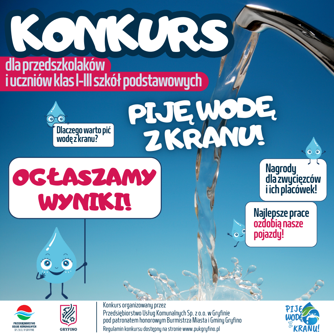 Celem konkursu było rozwijanie świadomości dzieci w wieku przedszkolnym i wczesnoszkolnym z zakresu jakości dostarczanej przez Przedsiębiorstwo Usług Komunalnych Sp. z o.o. w Gryfinie wody i zalet jej spożywania (walor ekologiczny, zdrowotny i ekonomiczny).