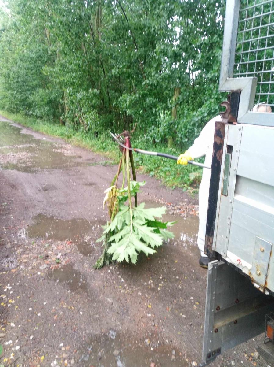 Dzisiaj w Wełtyniu przy ulicy Polnej, prowadziliśmy "mało przyjemne" prace polegające na usunięciu niebezpiecznej rośliny jaką jest barszcz Sosnowskiego.