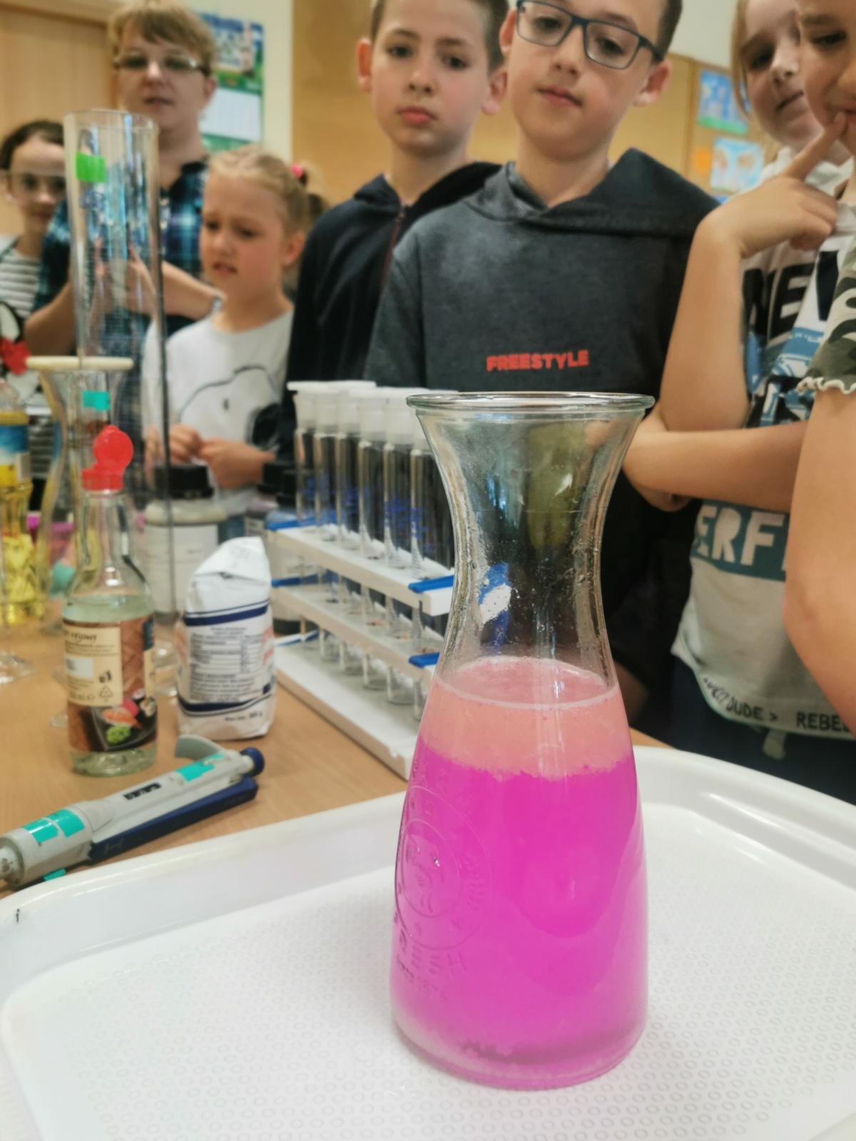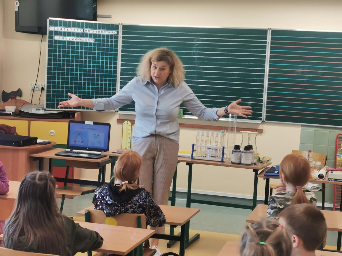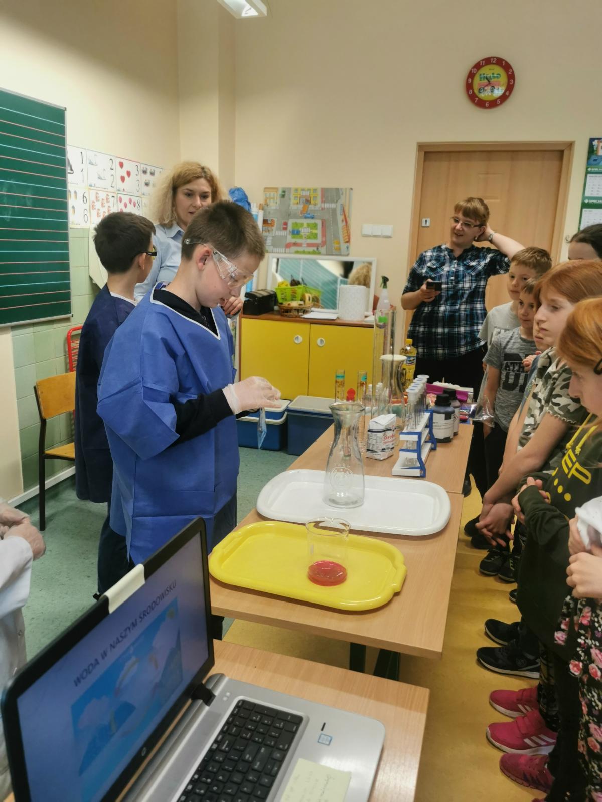 Na warsztatach zostały omówione zagadnienia dotyczące wody oraz zostały przeprowadzone doświadczenia z udziałem dzieci z klasy 3 c.