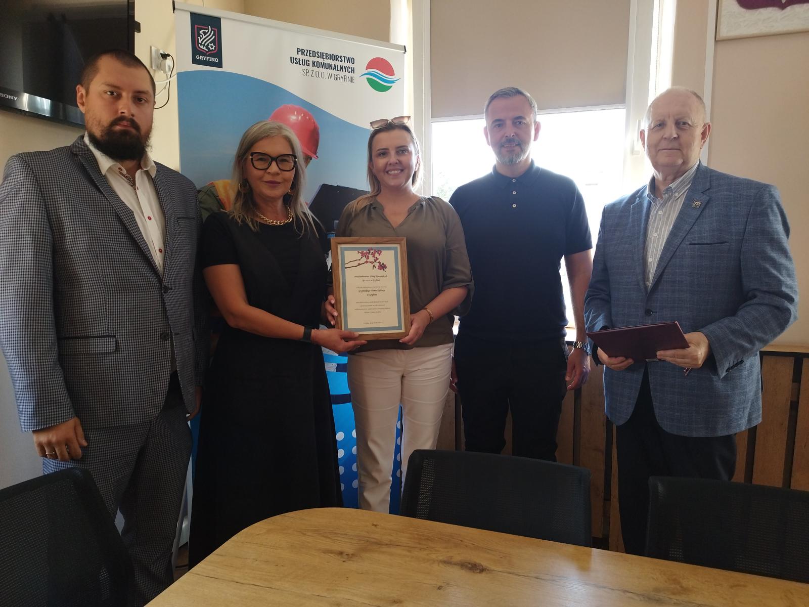 We wtorek 20 sierpnia w siedzibie Przedsiębiorstwa Usług Komunalnych Spółka z o.o. w Gryfinie gościliśmy przedstawicieli Gryfińskiego Domu Kultury - panią dyrektor Monikę Drabik i Stanisława Fabijańczuka, a także Zastępcę Burmistrza - panią Aleksandrę Szymanowicz. Ta wizyta związana była z oficjalnym przekazaniem w formie darowizny użytkowanego dotychczas w Spółce samochodu osobowego na rzecz GDK. Pojazd po odnowieniu i w dobrym stanie technicznym będzie od tej pory pełnił nowe funkcje i zostanie wykorzystany do celów statutowych realizowanych przez samorządową instytucję kultury Miasta i Gminy Gryfino.